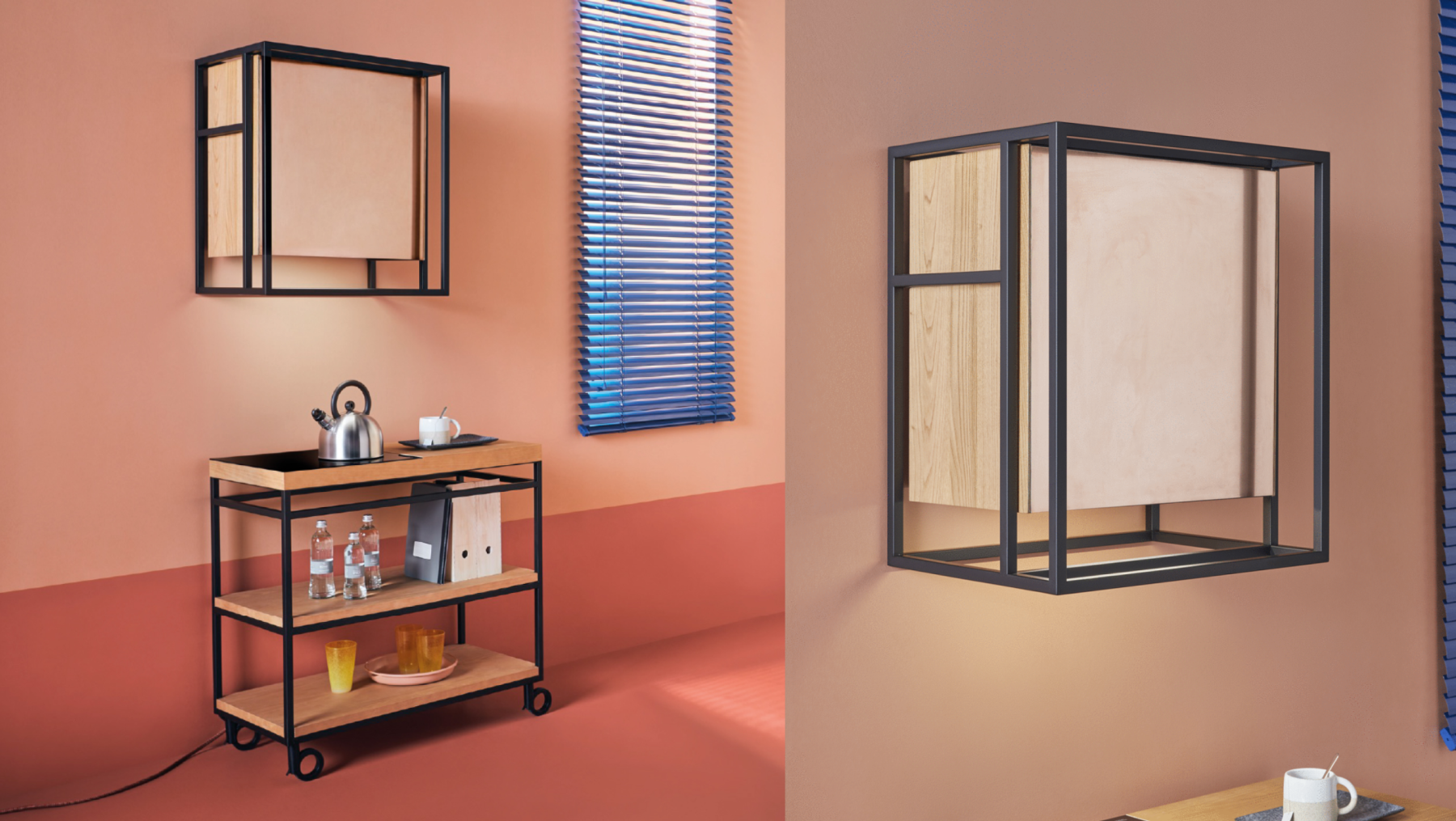 Cassetta – máy hút mùi áp tường kết hợp từ cấu trúc gỗ và đồng với thiết kế theo xu hướng Geometric thời thượng – có thể trượt và mở rộng để tối ưu hóa công suất hút mùi, khói khi nấu bếp. Sản phẩm không chỉ có thể được tuỳ chỉnh màu sắc và